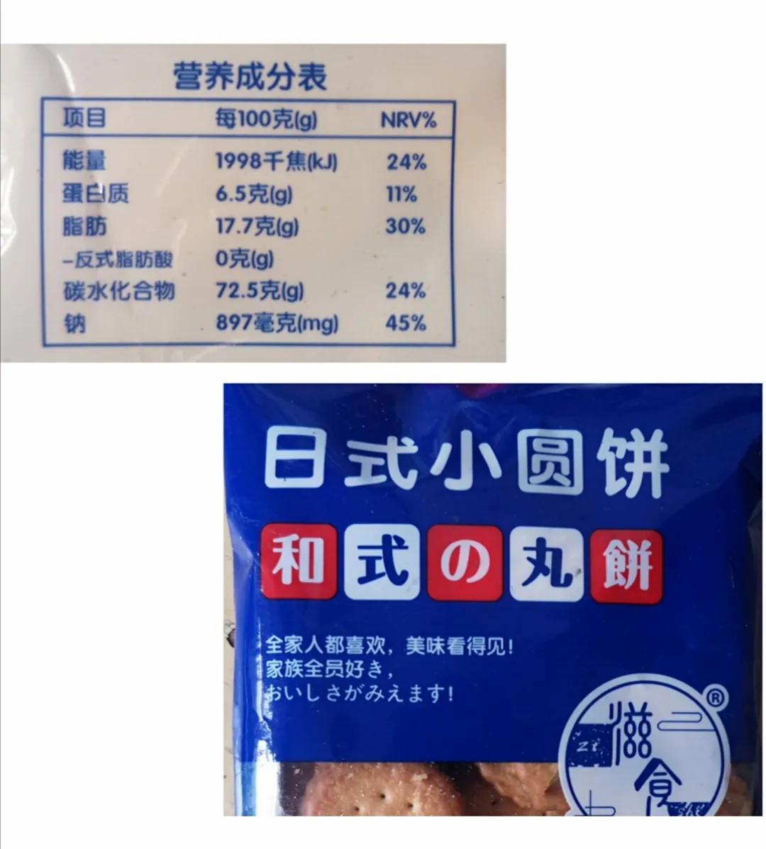 ▶Tip1:成分表最后一列的NRV是指占一天摄入量的比例。比如一袋小饼干的NPV是24%,就意味着吃掉这袋饼干,能力的摄入就已经占了全天量的24%,脂肪的摄入占了全天量的30%。