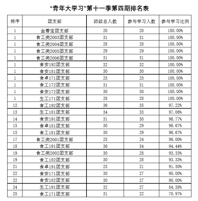 青年大学习第十一季第四期排名表