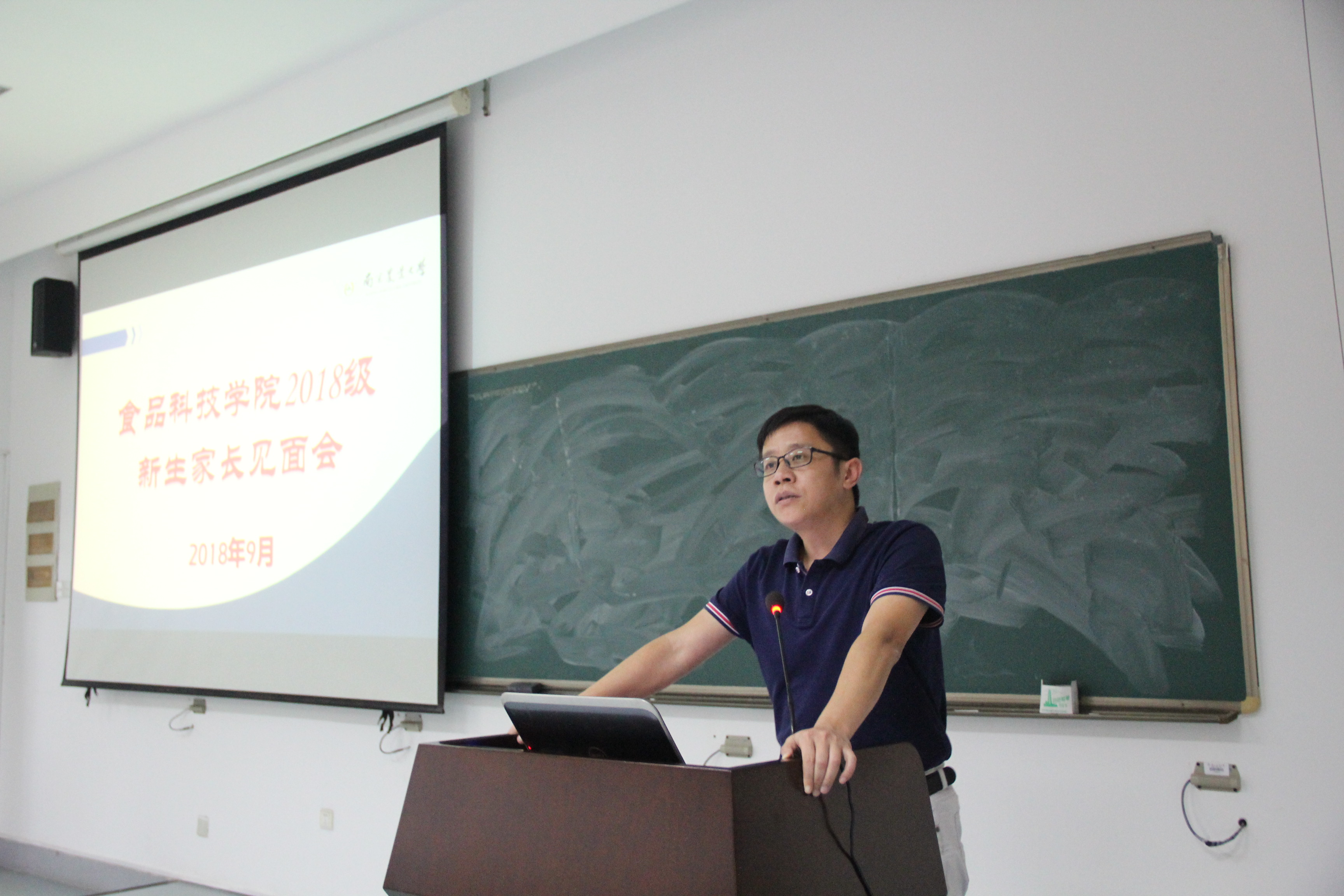 9月8日下午四时,pp电子官方网站2018级新生家长会在国家肉品质量安全控制工程技术研究中心一楼报告厅召开。pp电子官方网站院长徐幸莲教授、副院长李春保教授、辛志宏教授、金鹏教授,院党委副书记丁广龙,食工1801班主任陈志刚教授,食工1802班主任董洋老师、食工1803班主任叶可萍副教授、食工1805班主任李伟教授、1806班主任、研究生辅导员王雪飞老师,本科生辅导员周凌蕾、陈宏强以及100余位新生家长参加。家长会由丁广龙主持。