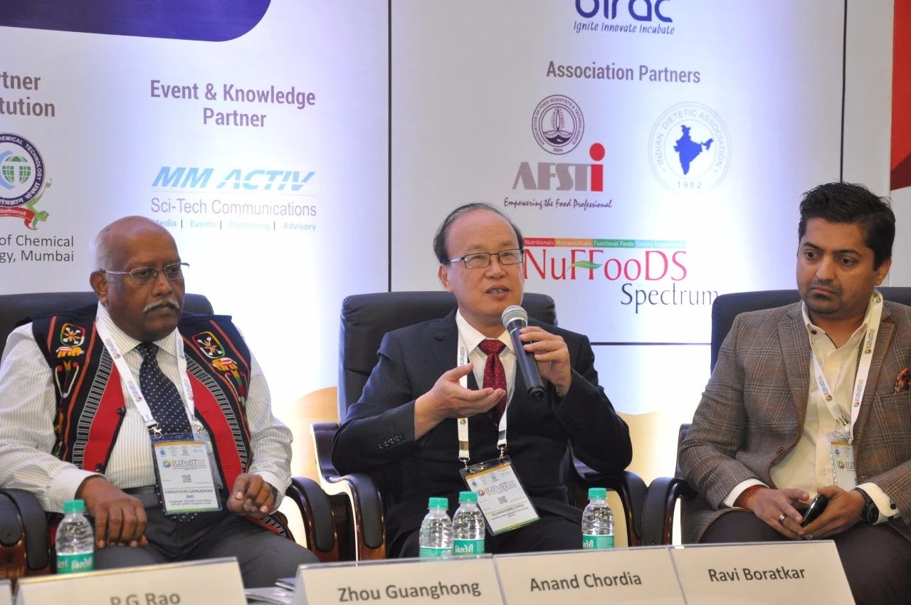 在本届大会上,周光宏教授作了“中国食品工业和科学技术发展”的特邀报告,介绍了中国食品产业和科学技术发展及所面临的挑战。此外,周光宏教授作为特邀嘉宾参与了大会的企业论坛,与印度相关食品企业进行了对话交流。