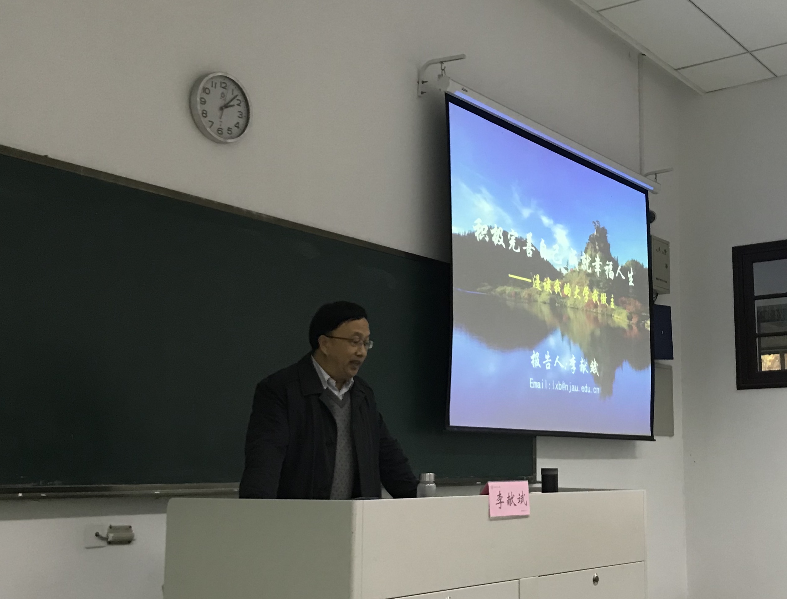 李献斌为同学们的大学生活提出了建议,活在当下,保持阳光心态,学会管理情绪。