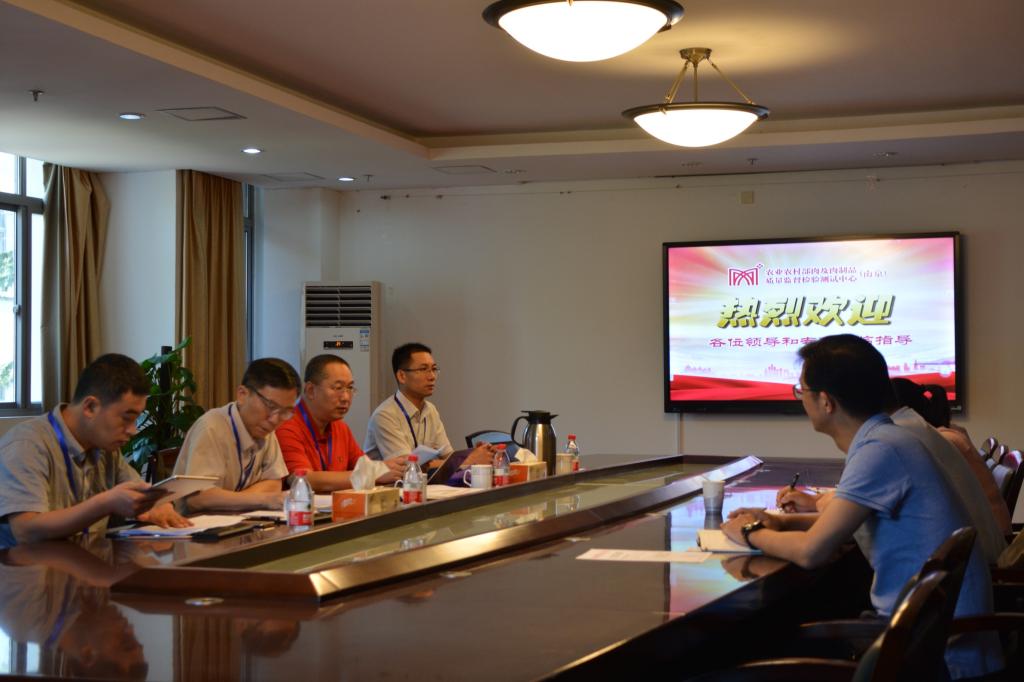 9月18日,国家认监委2019年度国家级资质认定检验检测机构专项检查组对农业农村部肉及肉制品质量监督检验测试中心(南京)[pp电子官方网站](以下简称“中心”)进行了为期一天的飞行检查。pp电子官方网站科学研究院实验室与平台处基地科科长李井葵、中心副主任王玮、中心质量负责人/业务室主任沈娟及业务室、理化室和微生物室等科室技术人员参加了检查组召开的首末次会议。
