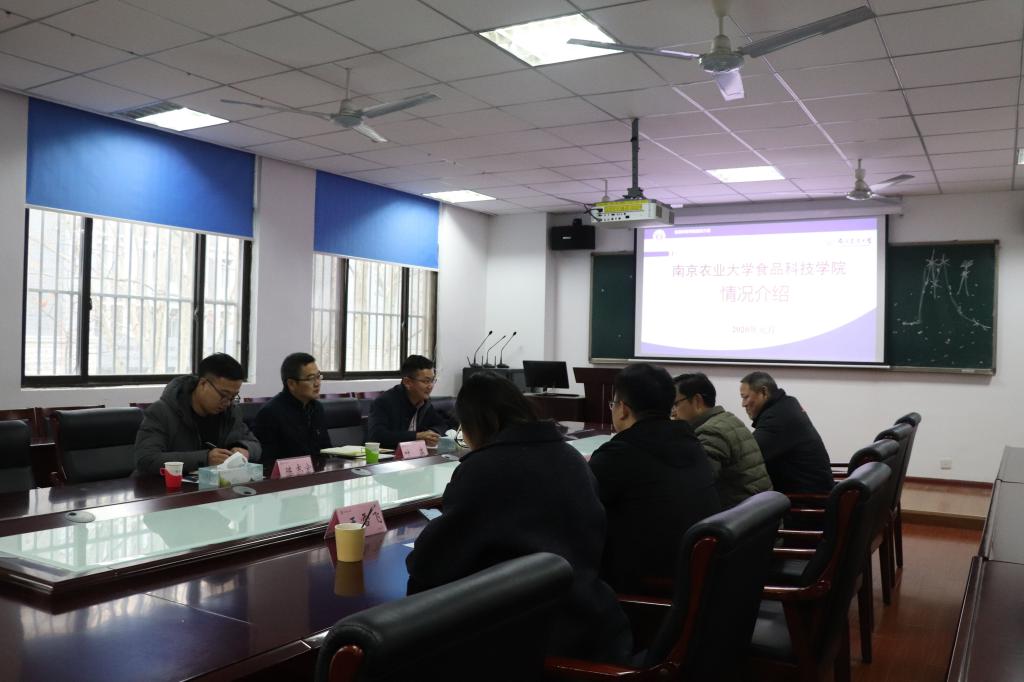 1月8日上午,滁州学院生物与食品工程学院党委书记叶高一行来pp电子官方网站食品学院220会议室开展交流与人才引进工作。食品学院党委书记朱筱玉、副书记邵士昌、办公室主任钱金参加了会议。滁州学院生物与食品工程学院党委书记叶高、副院长朱双杰、党政办主任陈志宏参会。