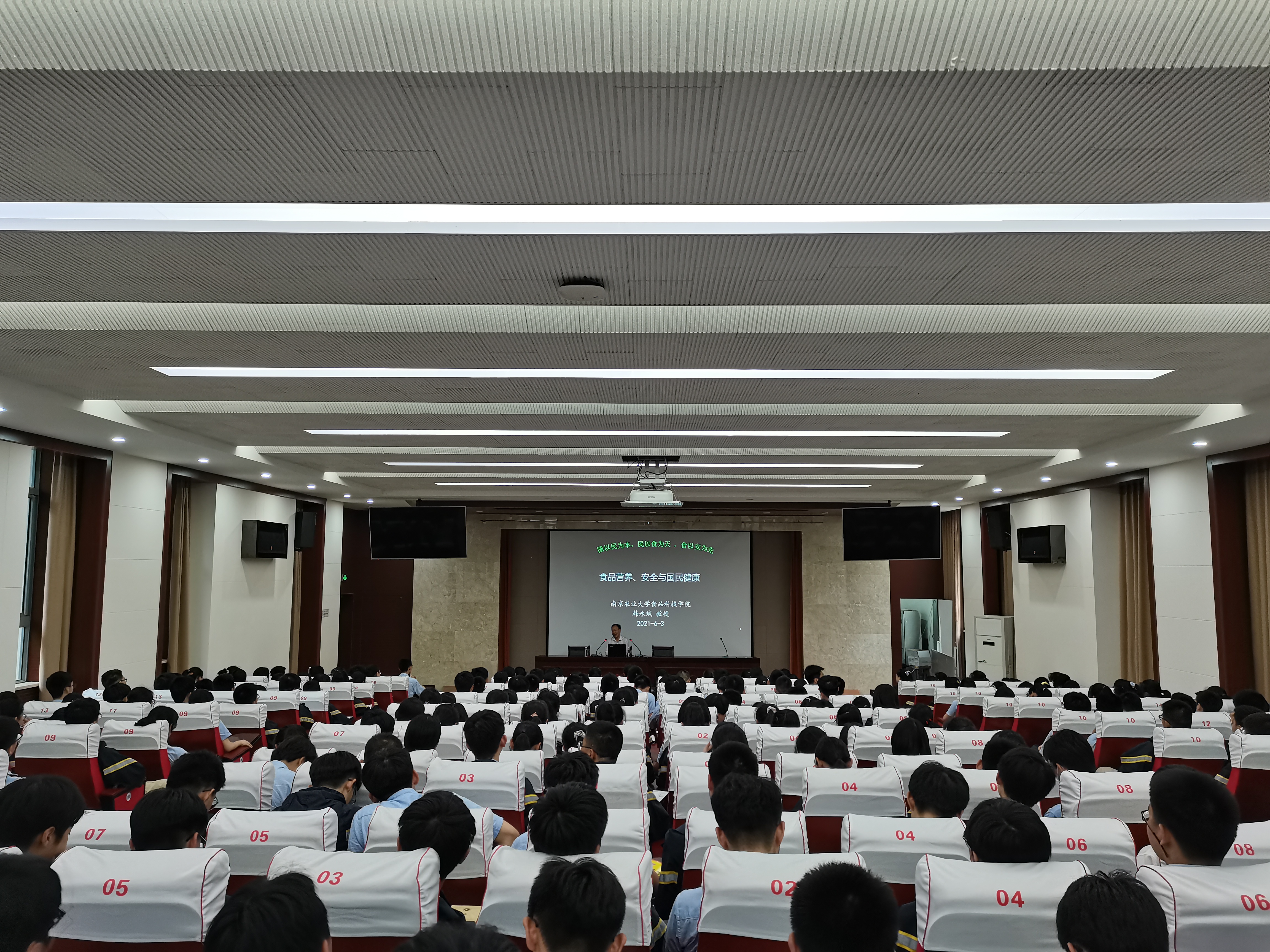 韩永斌以“我国食品营养、安全与国民健康”为主题为同学们上了一堂生动的食品科普公开课。先后从食品概念、分类与功能,我国食品消费与国民健康现状及趋势与对策及食品产业未来发展等方面进行了介绍。讲座过程中,他为期末备考的同学们提出了合理安排个人饮食、做好营养健康搭配建议。