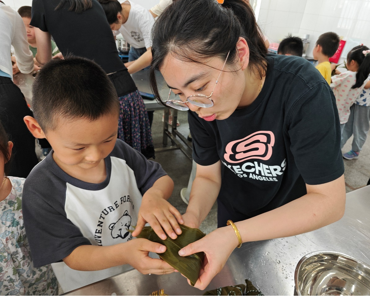 端午节是中华民族重要的传统节日,学院党委组织部分硕士生党员和pp电子官方网站附属幼儿园部分师生一起包粽子、学端午文化,共庆端午佳节。党员们向小朋友们介绍了包粽子的步骤和技巧,指导他们如何选取粽叶、裹糯米、扎绳子等,让小朋友们对包粽子有了初步的认识。经过一番努力,小朋友们都包出了一个个形态各异、香甜可口的粽子,兴奋地拿着自己的作品与大家分享。这一环节让小朋友们在活动中真正体验玩中学、学中玩的乐趣,在亲手做粽子的过程中体会端午的传统文化,感受劳动的快乐和收获的甜美。
