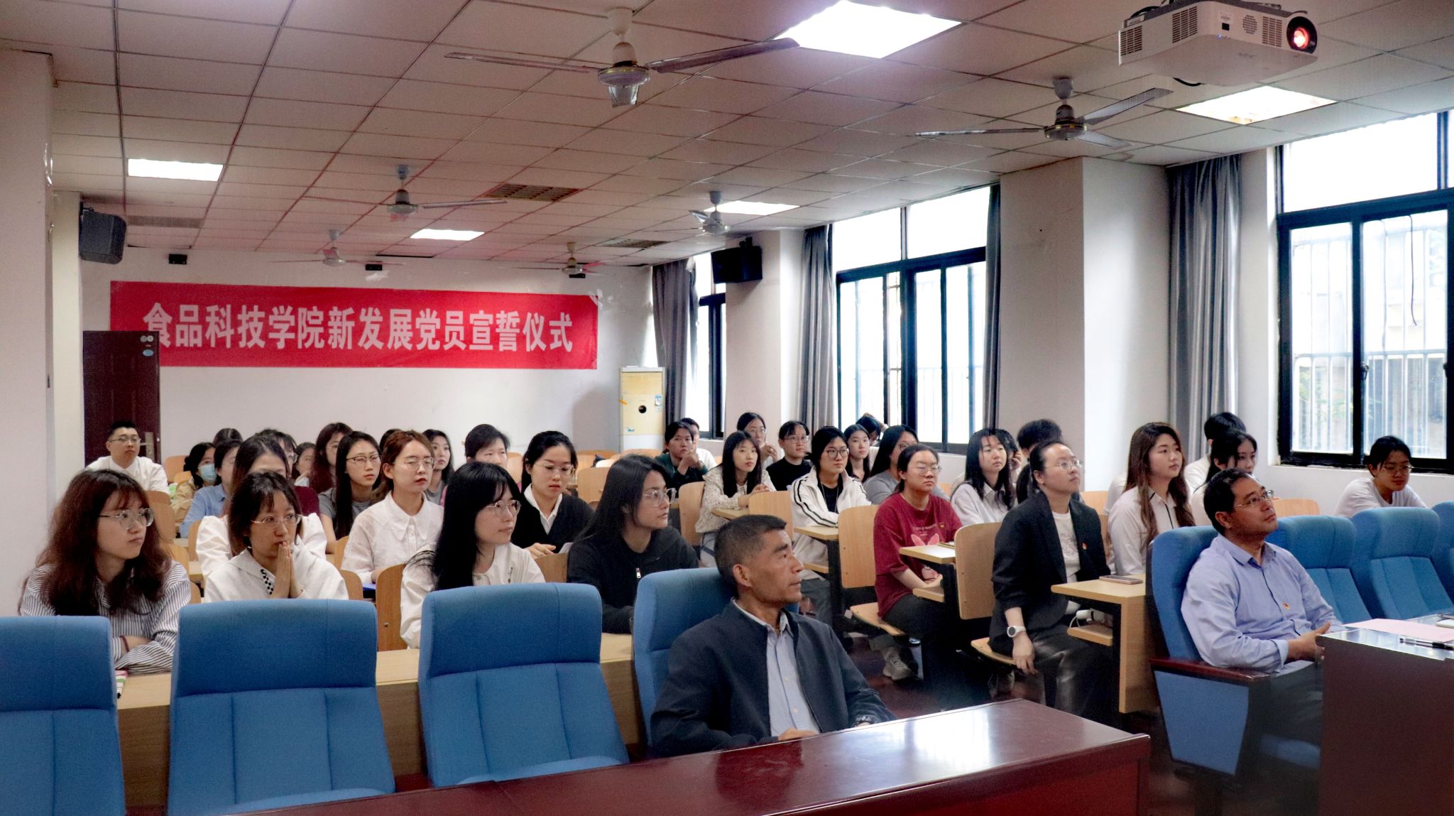 孙健代表学院党委对新发展党员表示热烈祝贺,并对新发展党员提出四点希望:一是强化政治理论学习,坚定政治立场。要把理论学习作为终身课题,不断提升自身理论修养,关注国家和时代发展形势,了解新中国发展取得的各项成绩来之不易。增强“四个意识”、坚定“四个自信”、做到“两个维护”;二是对党绝对忠诚,牢记责任使命。要明确党员的初心使命,深入开展党纪学习教育,严守党的政治纪律和政治规矩。三是发挥党员的先锋模范作用,做好表率。时刻严格要求、鞭策、激励自己,做好表率、亮出旗帜,传承党的光荣传统和优良作风;四是立大志、明大德、成大才、担大任。坚持为国奉献、为民服务。 坚持为公不为私,为助推食品产业高质量发展贡献青春力量。