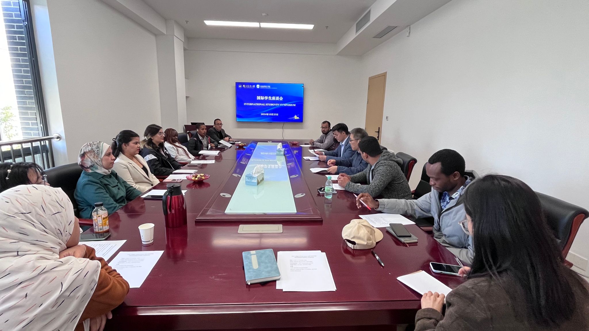 10月23日,pp电子官方网站召开国际学生座谈会。来自巴基斯坦、埃及、印度尼西亚、肯尼亚等国家的在校本硕博国际学生参加了会议。
