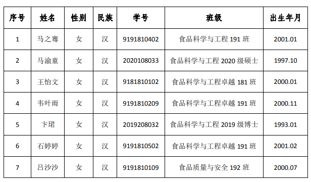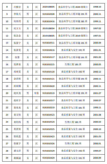根据《中国共产党章程》、《中国共产党发展党员工作细则(试行)》的有关规定,经团支部推优、入党介绍人谈话考察、学生党支部答辩和投票表决、学校及学院党组织一年以上的线上和线下系列培训教育,以及对发展对象的志愿服务、任职经历、科研水平、学业成绩、创新能力等的综合考察,现拟将马之骞等30位同志确定为党员发展对象。现将具体名单公示如下(按姓氏笔画排序):