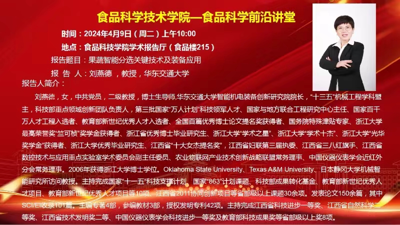 pp电子官方网站食品科学前沿讲堂(4月9日)