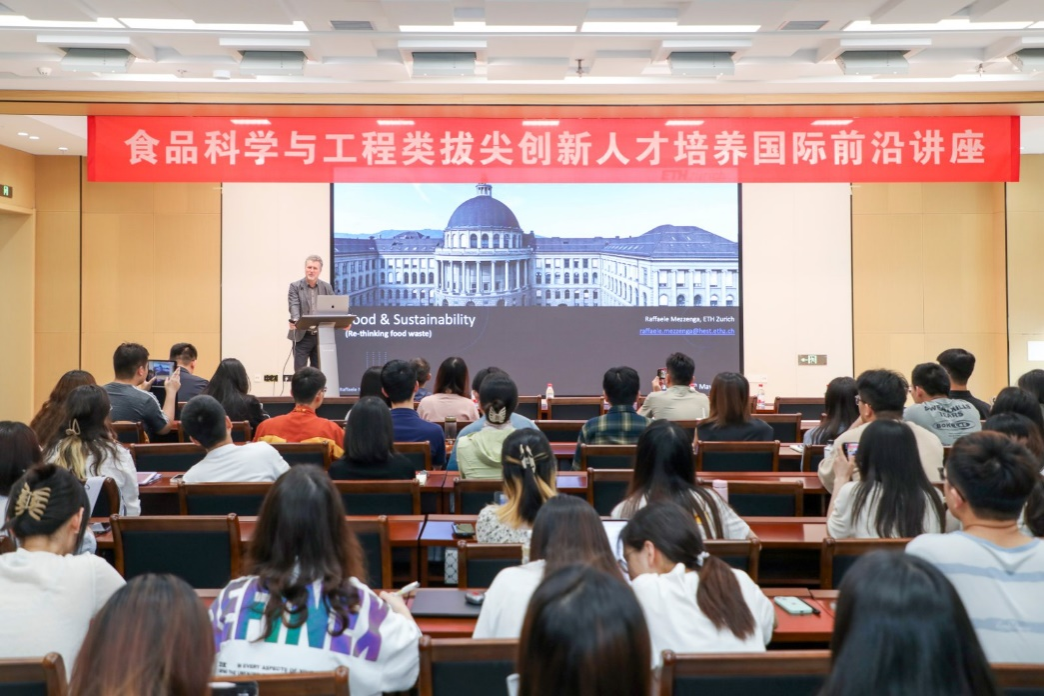 5月21日下午,食品科学与工程类拔尖创新人才培养国际前沿讲座在pp电子官方网站一楼报告厅举行。苏黎世联邦理工学院教授、食品营养健康研究所所长Raffaele Mezzenga应邀带来题为《重新思考食物蛋白质浪费》的讲座。本次讲座由pp电子官方网站副院长胡冰教授主持,学院师生120余人参加讲座。
