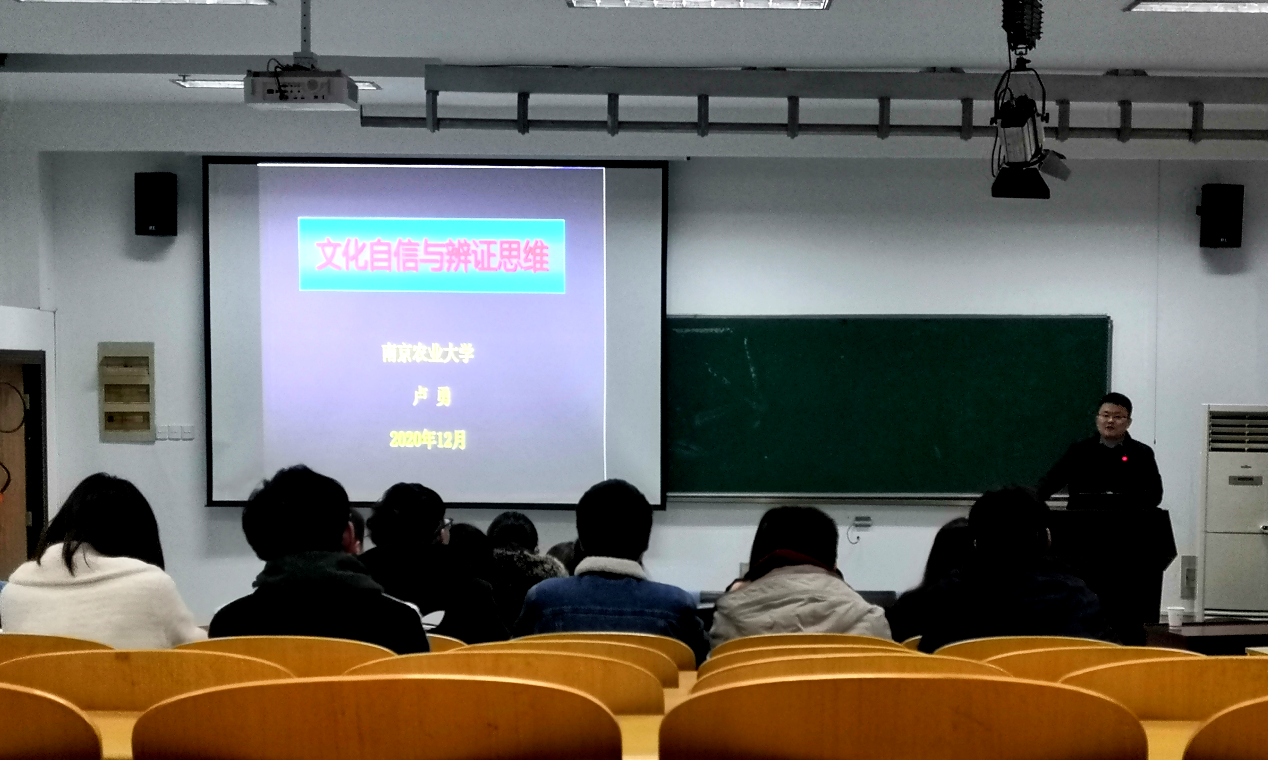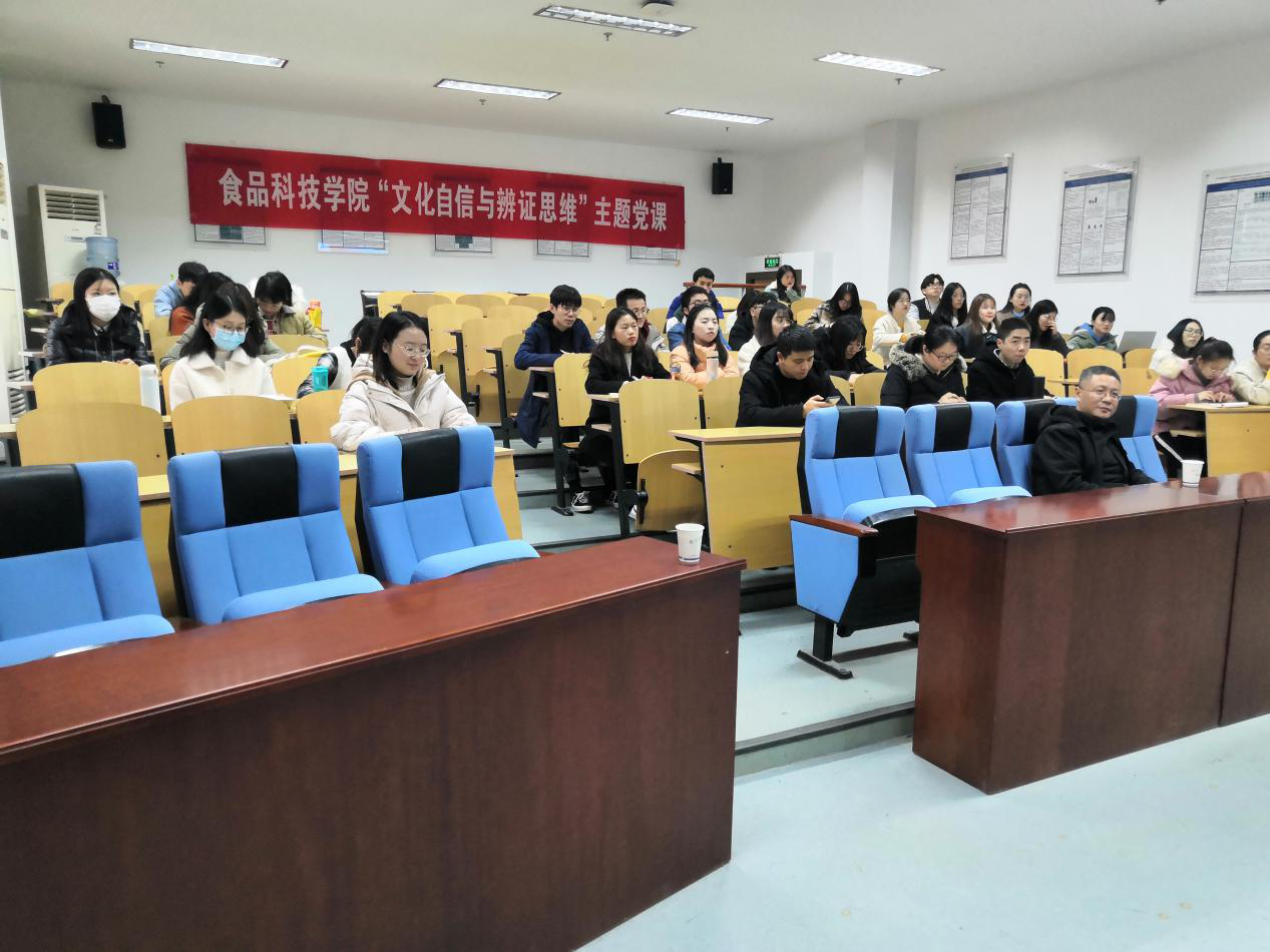 为了深入学习贯彻党的十九届五中全会精神,深入开展“四史”学习教育,引领学院广大学生党员牢固树立社会主义核心价值观,加强文化自信,12月9日下午,pp电子官方网站“文化自信与辩证思维”四史主题教育党课在肉品中心报告厅顺利举办。pp电子官方网站人文社科处副处长卢勇教授受邀开展报告。本次活动由食品院党委副书记邵士昌主持。