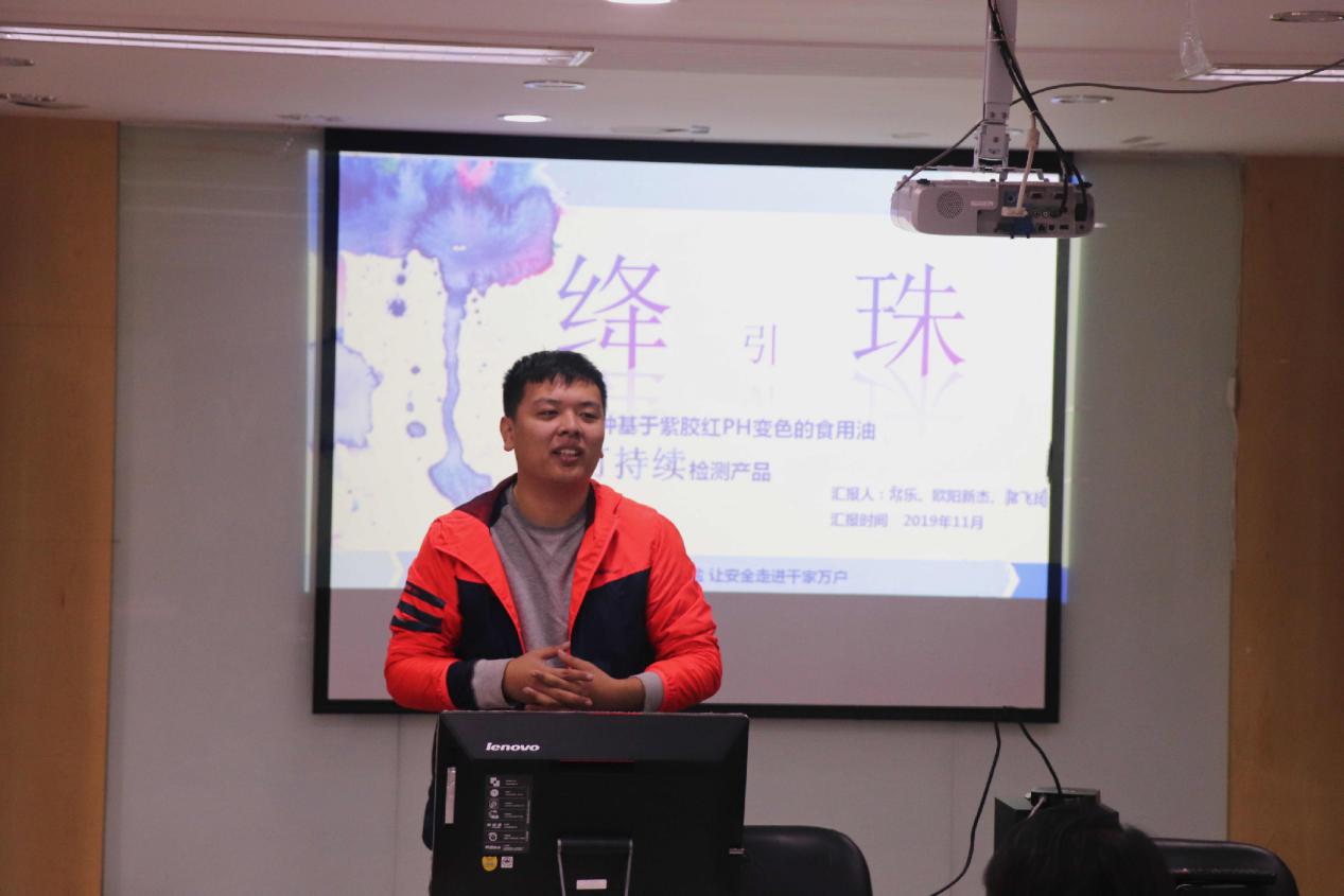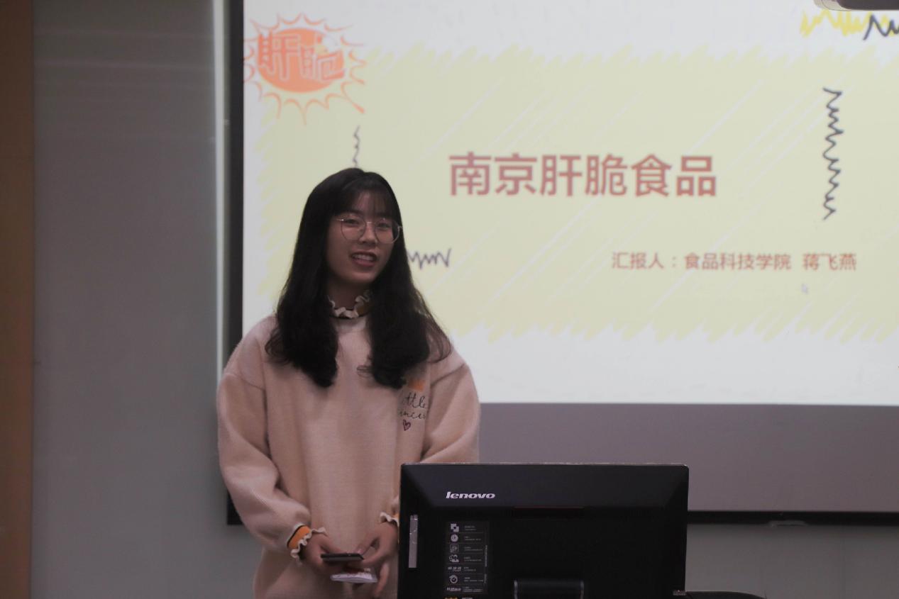 活动分为两部分。首先由支部成员付楚靖、蒋飞燕、杨子懿分为向社区居民介绍了自主设计制作研发的特色产品—“苏酪肝脆绛引珠。在介绍产品创新思路和优势特色的同时,还普及了乳制品、动物肝脏和食用油的安全小知识,引起了到场居民的极大兴趣。