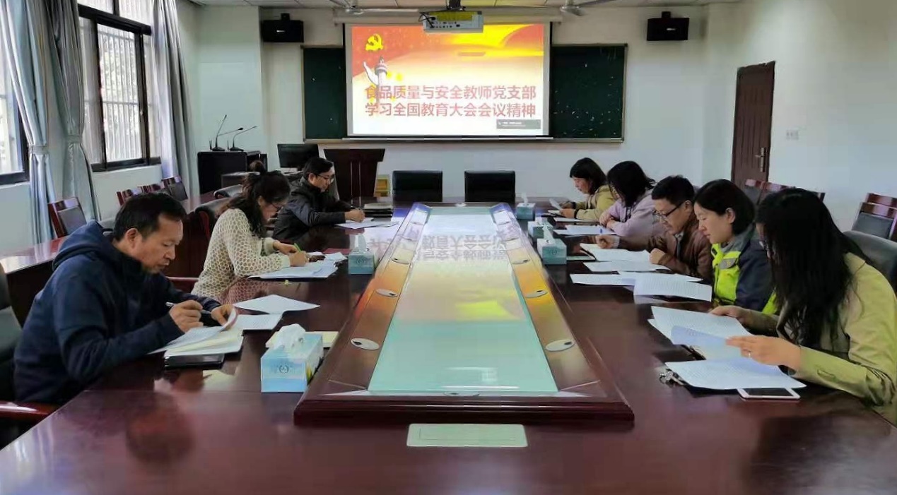 食品质量与安全教工党支部集中学习“全国教育大会会议精神”和“习近平总书记在解决‘两不愁三保障’突出问题座谈会上的讲话”