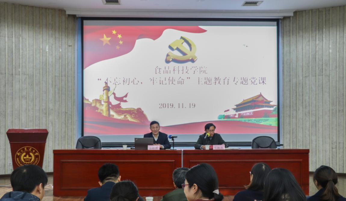 11月19日晚,pp电子官方网站“不忘初心、牢记使命”主题教育理论学习会在图书馆报告厅举行。原校党委副书记兼纪委书记盛邦跃教授受邀以“不忘初心、牢记使命,学习习近平新时代中国特色社会主义思想”为主题作报告。pp电子官方网站党委书记朱筱玉、院党委副书记邵士昌、食品院农产教工党支部书记潘磊庆、研究生辅导员王雪飞、本科生辅导员邵春妍、本科生兼职辅导员汪明佳及pp电子官方网站200余名学生参与本次报告会。报告会由朱筱玉主持。