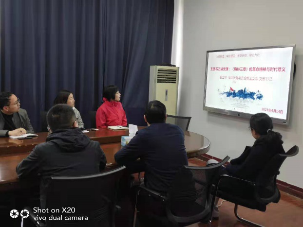 赵立艳书记选取了开国元帅陈毅的诗《梅岭三章》进行解读,从作者介绍、写作背景、诗句赏析、革命精深与时代意义四个方面,带领大家认识和学习中国共产党在中华民族复兴征程中的重要作用。